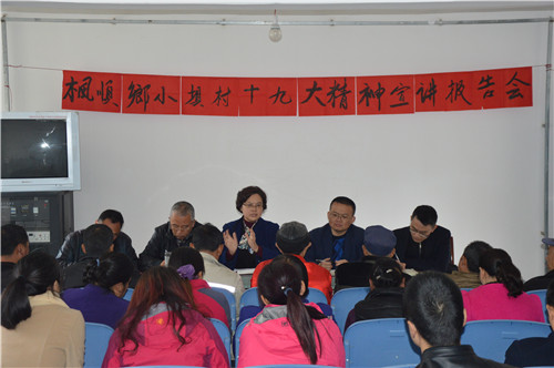 在村委会集中宣讲报告会上,党海燕同志围绕十九大会议主题和主要成果,如何学习领会新时代、新使命、新思想、新征程等方面,紧贴基层干部和群众的思想实际,深入浅出地宣讲了党的十九大精神。枫顺乡部分机关干部、小坝村全体党员和部分群众参加了宣讲报告会。